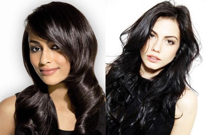 - Иссиня-черный подходит красавицам со смуглой кожей и длинными локонами.
