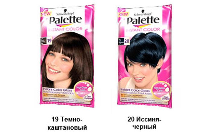 - Оттеночный гель Schwarzkopf Palette (20 Иссиня-черный, 19 Темный каштан). Отличное средство для поддержания тона. Стилисты рекомендуют использовать гель после окрашивания краской той же марки. Средство пенится как шампунь, результат держится до 8 смываний.