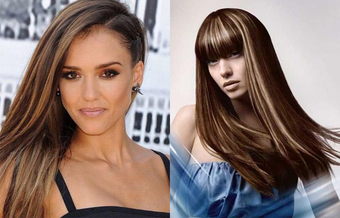 - Классическое мелирование. Темные пряди тонируются на всю длину светлым оттенком.