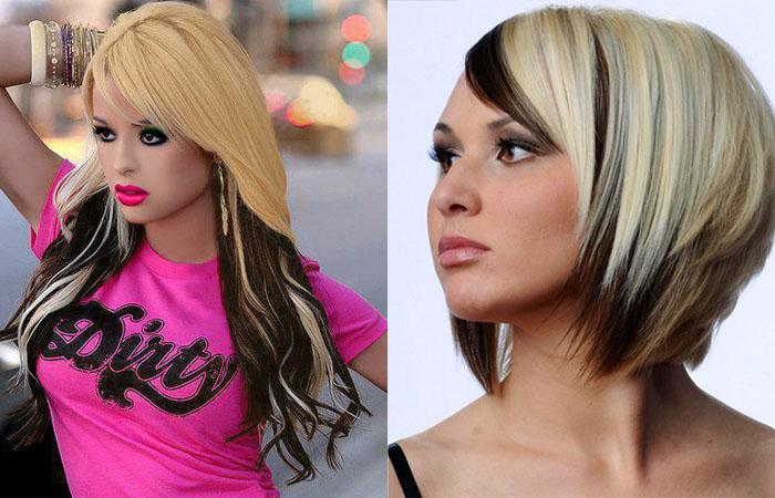- Балаяж. Так называется тонирование кончиков или корней контрастными оттенками. Эффект достигается за счет произвольного нанесения краски на пряди.