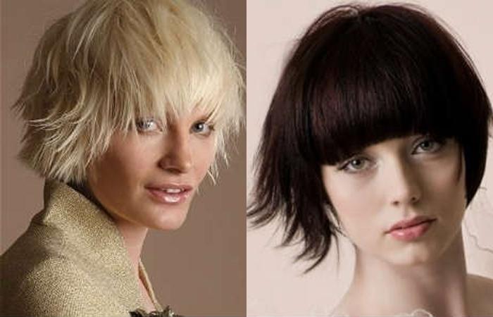 Лесенка на короткой длине волос прекрасно сочетается с любым вариантом челки. Ступенчатые срезы часто делают продолжением укороченного оформления фронтальных прядей. Такой вариант выглядит органично.