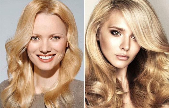 - Блондин — светлые волосы с оттенком золота. Наиболее эффективно сочетается с голубыми, серыми и карими глазами. Особую привлекательность локоны такого оттенка имеют летом, когда на них переливаются солнечные лучи.