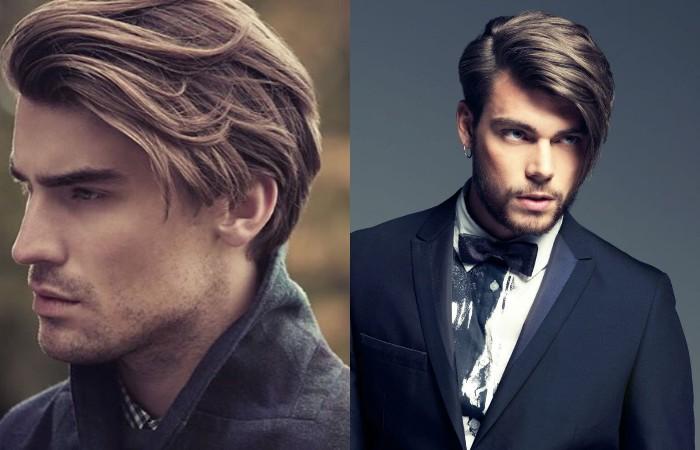 Стильный и современный вариант на средней длине подходит молодым и уверенным парням. Стилисты рекомендуют использовать высоким, стройным мужчинам с правильными выразительными чертами. Благодаря удлиненной челке и объемной макушке подходит и для круглых лиц, с помощью височных областей также удастся гармонизировать овал.
