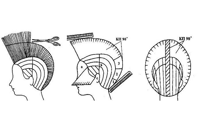 - Хорошо расчесать, локоны оттягивать на 90° по отношению к голове, подстригать до нужного уровня.