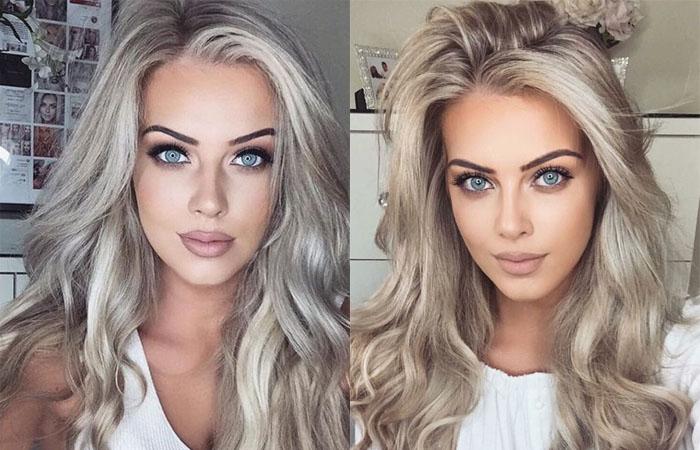 Максимально гармонично пепельный раскрывается на обладательницах светлых глаз и фарфоровой кожи. Для придания прическе натуральности рекомендуется проводить окрашивание в одной из техник мелирования — балаяж, омбре, шатуш, мажимеш, аир тач и т. д.