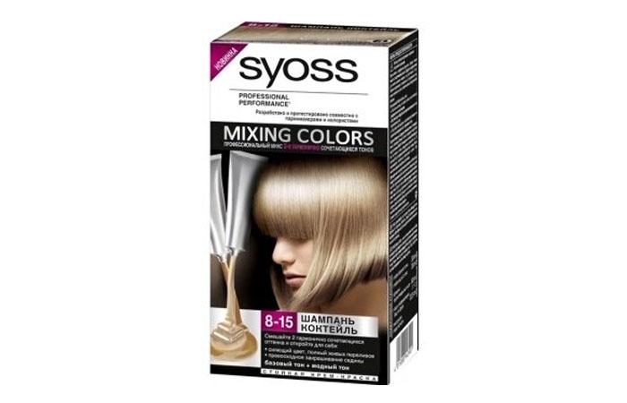 - Syoss. Среди пепельных оттенков вы сможете выбрать фьюжн мокко, ореховый коктейль, металлик серебристый блонд, дымчатый микс и шампань коктейль. Заявленный краситель очень редко вызывает аллергические реакции, сохраняет стойкость цвета и блеск на протяжении месяца.