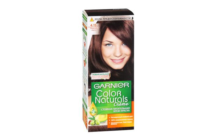 - Гарньер. Предлагает красавицам следующие пепельные оттенки: жемчужно-пепельный, песчаный берег, морозный каштан, сверкающий холодный мокко, пепельно-серебристый блонд, кремовый перламутровый русый, светлый пепельный и некоторые другие. Краска наносится на кончики, а затем прочесывается по всей длине. Выдерживают эмульсию порядком 25–35 минут.