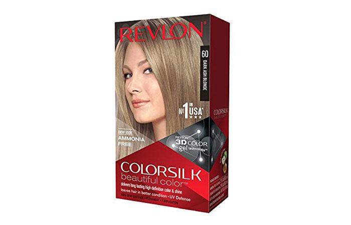 - Revlon Color Silk. Может похвастать обширным числом пепельных оттенков. В палитре вы сможете отыскать средний пепельный каштановый, светлый пепел, темный пепельный блонд, а также средний, светлый и ультрасветлый пепельный блонд. Максимальное время выдержки эмульсии составляет 25 минут, для седых локонов — 30 минут. С целью получения очень светлого окраса шевелюры, к примеру, пепельный блонд, рекомендуют увеличить пребывание красящего состава на голове до 45 минут. Краска слегка вспенивается, а затем смывается теплой водой.