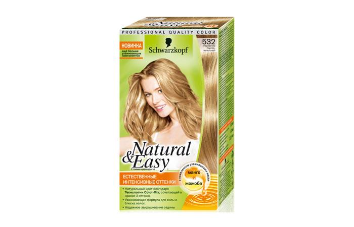 - Schwarzkopf Natural & Easy. Производитель предлагает девушкам следующие вариации пепельного: перламутровый светло-пепельный и пепельно-русый опал серии Natural Easy, а также чисто пепельный русый линейки Essential color. По отзывам некоторых пользователей, краска слабовато прокрашивает седые локоны, а также корни волос. Зато профессиональный краситель Schwarzkopf Igora Royal порадует девушек насыщенным русым пепельным «сандрэ».