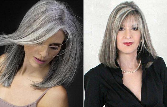 Потрясающий вариант окрашивания локонов для женщин в возрасте, желающих замаскировать седину. Подобное окрашивание также подойдет деловым женщинам с большой силой воли и стремлением к победе. Представляет собой сочетание темного русого «графита» с ультрапепельным блондом. Выполняется в обычной технике мелирования с применением фольги.