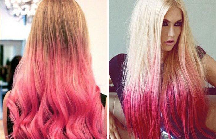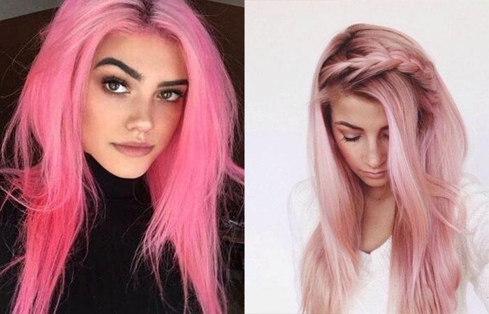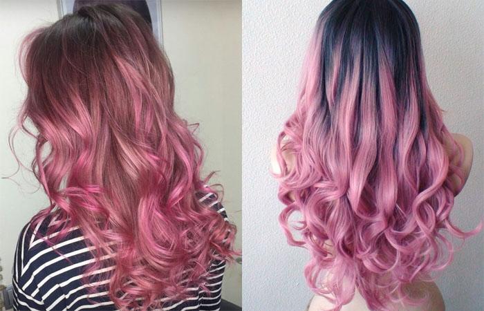 Стилисты считают, что светловолосым красавицам больше идут пастельные оттенки розового, которые вперемешку с натуральными локонами создают потрясающий объем и интересные переливы. Темноволосым красавицам рекомендуют окрашивать локоны в яркие цвета — амарант, фуксия, фиолетовый, кораллово-пурпурный или дикую орхидею.