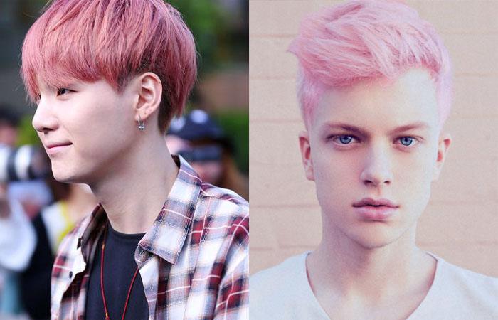 В зефирный цвет красят волосы не только женщины, но и мужчины. На следующем фото парень с розовыми волосами выглядит стильно и нестандартно.