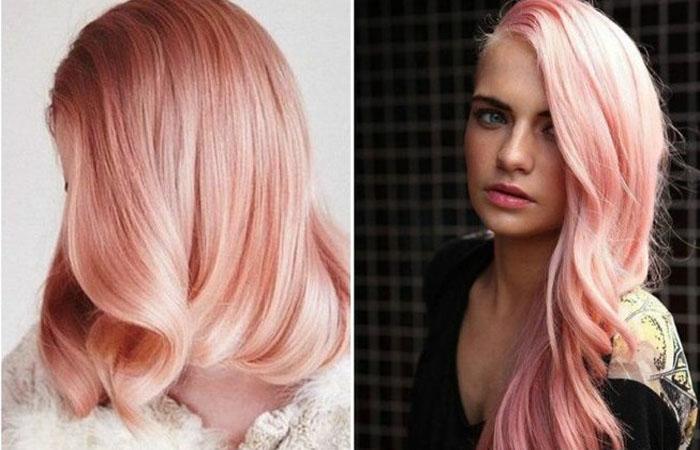 Цвет «розовое золото» чем-то напоминает драгоценный металл. По стилю он больше подойдет молодым девушкам или эпатажным особам. Среди знаменитостей в подобный оттенок окрашивали локоны Кети Перри, Блейк Лайвли, Риз Уизерспун и Рита Ора.