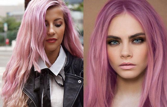 Существует насыщенный фиолетово-розовый цвет. Но в большинстве случаев девушки отдают предпочтение «ирисовому» розовому. Этот оттенок является более нейтральным, поскольку сочетает в себе блонд, фиолет и розовый. Этот цвет подойдет светлокожим красавицам. Может сочетаться с холодными оттенками блонд, а также пепельной ольхой и каштаном.