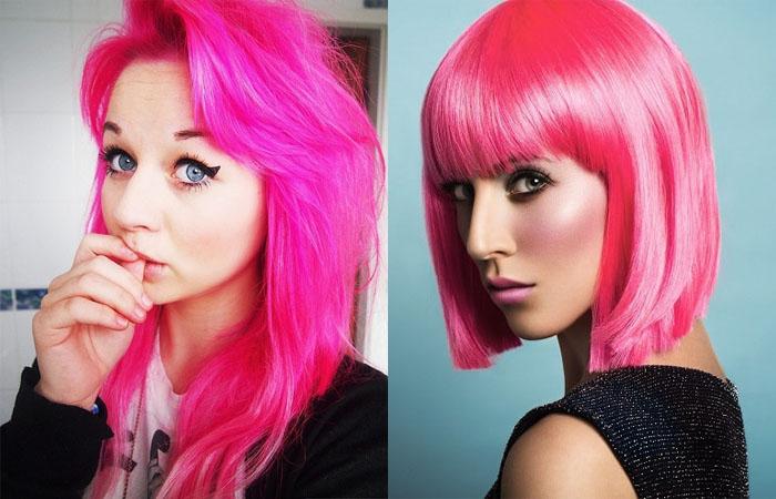 Цвет является достаточно ярким и неординарным. Главное, не окрашивать локоны полностью в чистый розовый цвет, если, конечно же, вы не планируете выглядеть как кукла Барби или девушка-эмо.