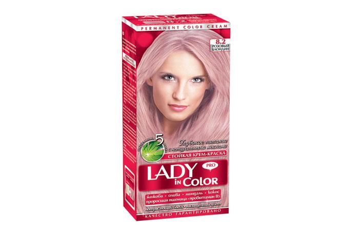 - LADY in Color. К сожалению, этот бюджетный краситель слабо прокрашивает волосы и быстро смывается. Кроме того, существует всего один оттенок розового — «Розовый блондин». Закрасить седину у вас вряд ли получится.