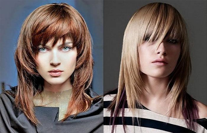 Удлиненные варианты рваной челкой предполагают объем, мягкость линий. Для создания нужно обработать пряди пенкой. Сушить, накрутив срезами внутрь на щетку брашинг. Можно укладывать ровную, а также асимметричную челку. Подходит приверженцам классического стиля, визуально удлиняет лицо.