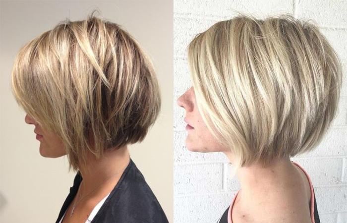 Градуированное вариация традиционной формы предполагает создание слоев срезами под углом. Техника позволяет получить однородную текстуру стрижки. В лесенке пряди стригутся четкими линиями.