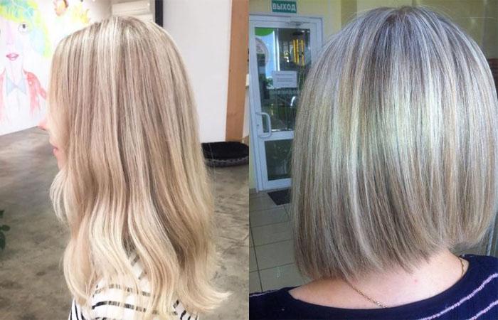 Основной внешней проблемой после процедуры является необходимость сохранения цвета. Жемчужно-пепельные тона нуждаются в регулярном применении оттеночных шампуней с фиолетовыми пигментами. Средства позволяют сохранить, выровнять цвет. Придется тщательно следить за отрастанием корней.