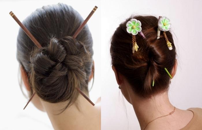 - палочки, заколки в китайском стиле с оригинальным декором в виде птиц, животных, цветов.
