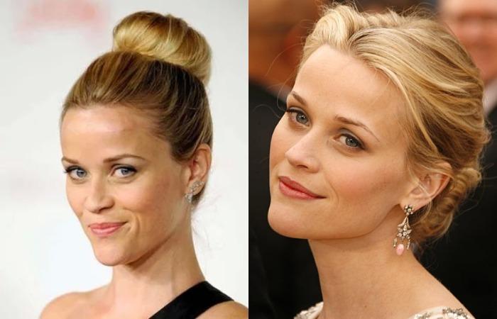 Риз Уизерспун часто использует аккуратную укладку, элегантная прическа хорошо сочетается с вечерними платьями.