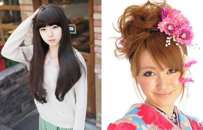 Укладки с длинными локонами отличаются симметрией. Распущенные или заплетенные волосы сохраняют вертикальное расположение прядок, позволяет визуально придать овалу правильную форму. Прямая густая челка не только скрывает высокий лоб, но и акцентирует внимание на миндалевидных глазах. Выбирают укладки на длинных локонах девушки разных профессий и возрастных групп. Благодаря тщательному уходу сложно определить возраст китаянок, даже после 50 сохраняют девичью нежность и красоту.