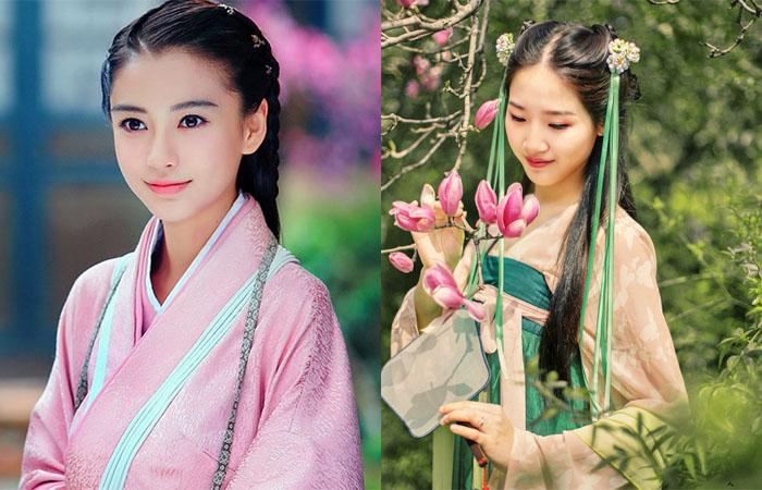 Особой популярностью пользовались челки. Их форма подчинялась общей симметрии прически. Как правило, в Китае носили ровную челку разной длины или разделенную на 2 части центральным пробором. В качестве декора использовались цветы, листва и даже небольшие ветки с почками. Помимо украшения, подобные заколки выполняли функцию дополнительной фиксации.