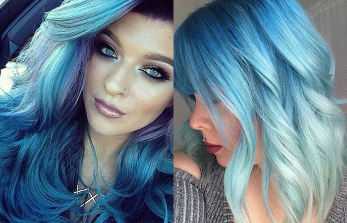Актуальным трендом парикмахерского искусства стало окрашивание в яркие оттенки. Если ранее бирюзовые, лавандовые, персиковые локоны можно было увидеть лишь в журналах или конкурсных работах, сегодня сочные тона заполонили улицы. Выбирают брюнетки, желающие подчеркнуть насыщенность черного цвета. Для блондинок это отличный способ воплотить кукольный образ Мальвины. Синие волосы требуют не только профессионального колорирования, но и применения качественных ухаживающих средств, чтобы локоны оставались мягкими, шелковистыми.