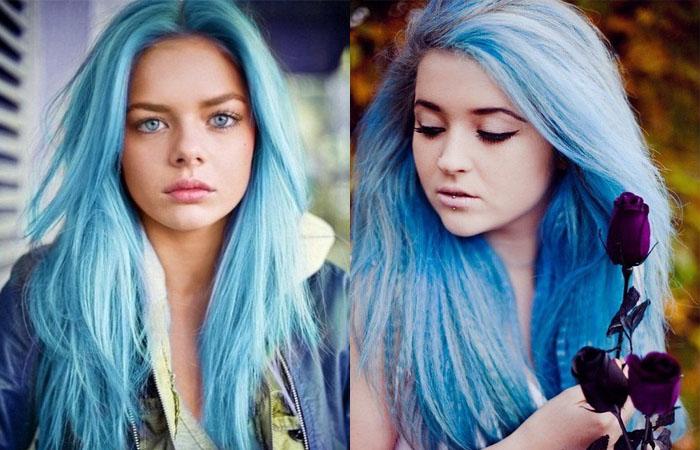 В идеале подойдет любой оттенок блонда, но синий цвет получится и у обладательниц светло-русого и русого оттенка волос. На слишком темных волосах синяя краска даст лишь небольшой оттенок, поэтому если целью является получение яркого и насыщенного цвета, то волосы предварительно нужно будет осветлить.