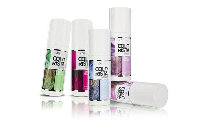 Красящий спрей для волос L’Oreal Paris включает оттенки: бирюзовый, голубой мятный. Пигмент равномерно распределяется с помощью спреевой насадки, обеспечивая равномерное тонирование до следующего мытья локонов. Перед применением плечи следует накрыть, хорошенько встряхнуть флакон, распределить на расстоянии 15 см, затем расчесать пряди. Не проникает в стволовую структуру, позволяет сохранить природную шелковистость, блеск локонов. Цена 292 руб.