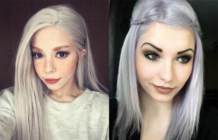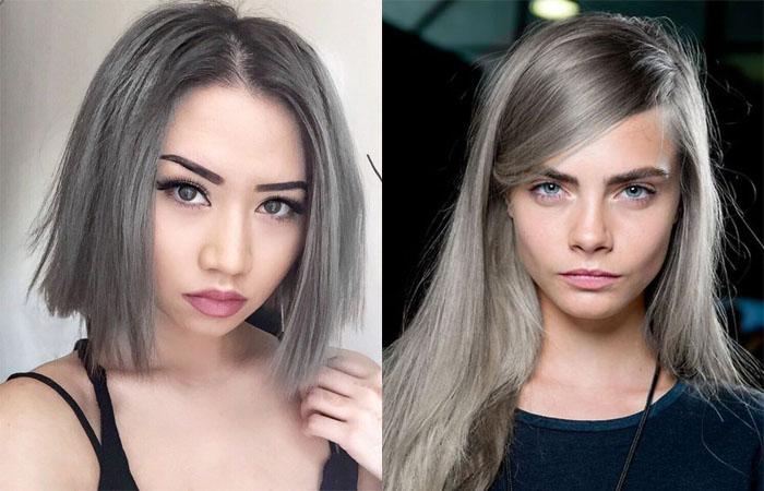 Темноглазым девушкам будет к лицу темно-серый цвет волос. Важно также учитывать цветотип и оттенок кожи. Серебристые локоны гармонируют со светлой кожей. Смуглым девушкам, чтобы образ воспринимался естественно, лучше выбирать более приглушенные цвета.