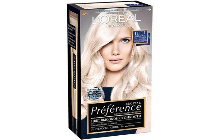 Краска для волос L’Oreal Paris Recital Preferenc позволяет добиться изысканных оттенков — пепельно-русый, копенгаген светло-русый, викинг очень светло-русый, светло-русый перламутровый, ультраблонд холодный пепельный, ультраблонд холодный перламутровый. Благодаря крупным молекулам, помогает сохранить глянцевый насыщенный цвет на протяжении 2 месяцев. Краска содержит витаминный комплекс, фильтры, обеспечивающие силу и блеск локонов. В комплект входит бальзам, усиливающий цвет, оберегающий волосы от выгорания на солнце, воздействия фена, утюжка. Купить можно за 434 руб.