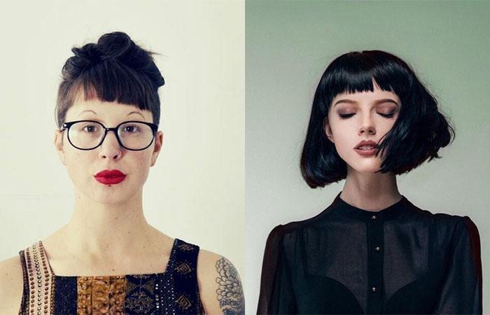 Челка считается короткой, если она открывает половину и большую часть лба. При этом густота и геометрия ее очертания может быть разной (ровной, косой, с рваными кончиками или прямым срезом).