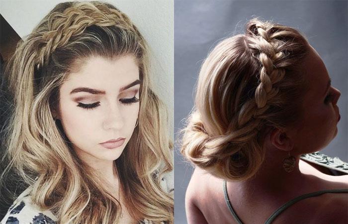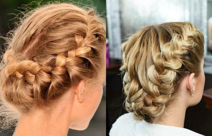 Из длинных волос получится выполнить разные вариации круговых кос. Для обладателей шевелюры средней длины удачнее частичное плетение. Можно попробовать водопад или ободок из волос с гулькой. Полное плетение выполняют по кругу. Рекомендуется попробовать вариант из хвоста.