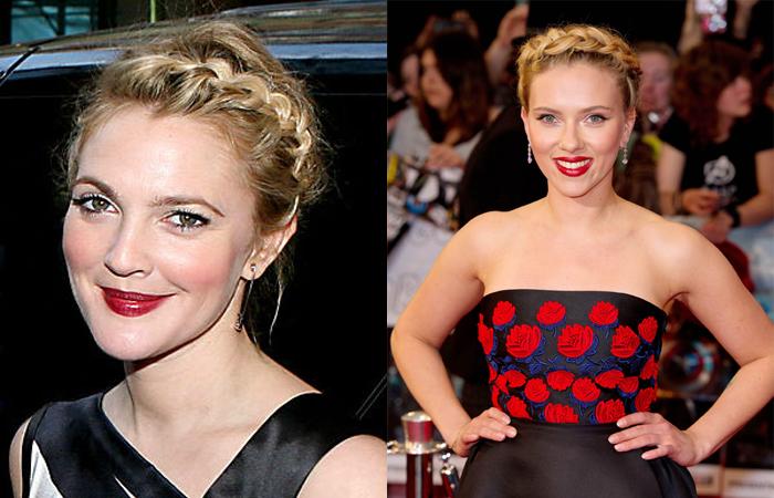Прическа в виде косы вокруг головы популярна среди звезд. Укладку получится увидеть на Дрю Берримор, Скарлетт Йоханссон, Джессике Альба, Сиенне Миллер, Дженнифер Лопес, Эмме Уотсон и многих других знаменитых дамах. Вариант необычен, позволяет полностью открыть лицо и шею, не избавляясь от длины волос. Укладка удачно подчеркивает женственность натуры.