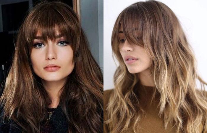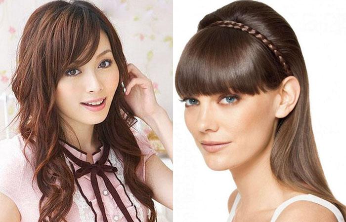Романтично и нежно смотрятся укладки с прямыми удлиненными челками, выполняются на прямых и слегка вьющихся локонах.