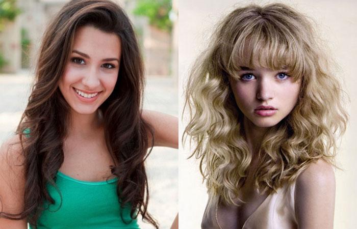 - барышни с круглым, квадратным, трапециевидным лицом используют ниспадающие пряди, визуально гармонизирующие овал, эффектно смотрится прическа вместе с челкой;