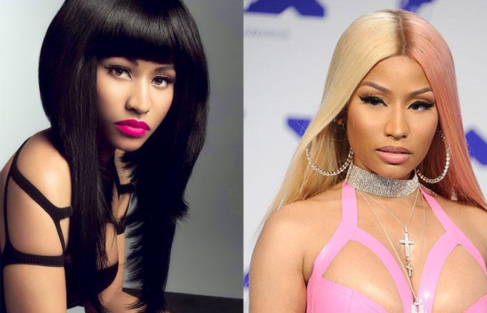Никки Минаж не устает экспериментировать с эпатажными нарядами, а также яркими оттенками волос, роскошно смотрятся на распущенных гладких прядях.