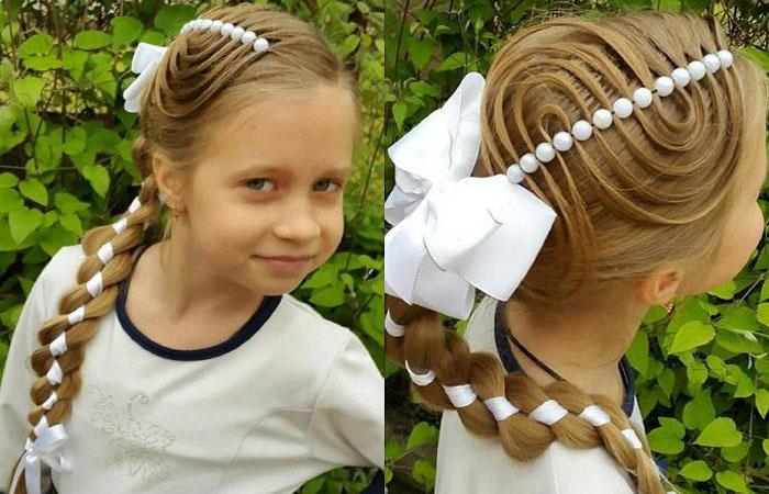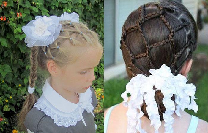 Торжественные мероприятия требуют тщательной подготовки. Юные принцессы выглядят трогательно с пышными аксессуарами, стильные модницы экспериментируют с актуальными образами. Прически с белыми бантами часто связывают со школьными праздниками. Очарование придают воздушные ленты, украшающие локоны.
