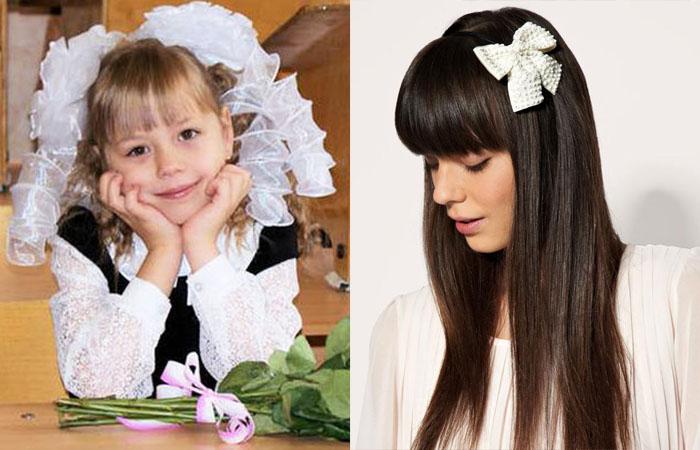 Юным модницам челка будет лишь мешать, короткие прядки выбиваются из общей композиции, придавая неаккуратный вид прическе. Укладка школьниц отличается особой строгостью, нет и намека на небрежные пряди. Стандартная ровная челка лишь прибавляет хлопот в уходе за тонкими детскими волосами.