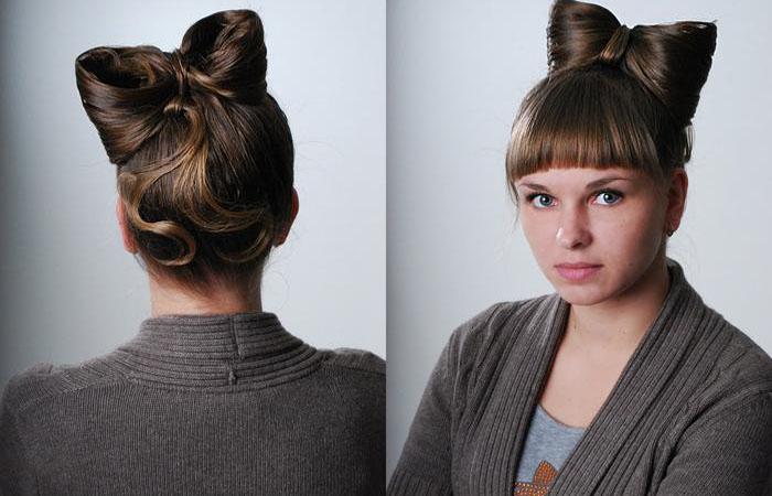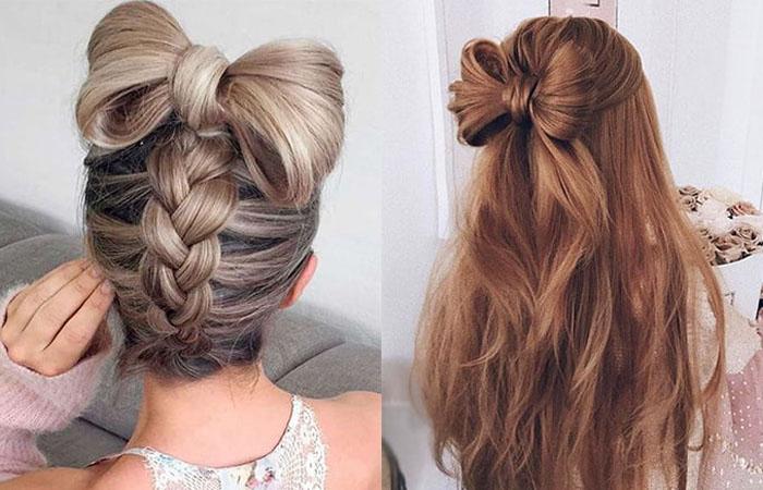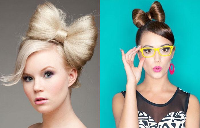 Пышные, аккуратные, лаконичные банты используются для создания укладок на разной длине.