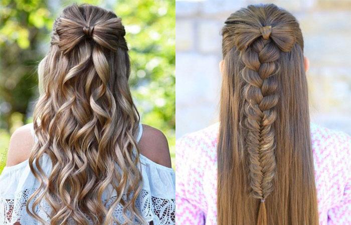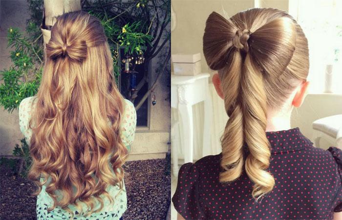 Укладки, украшенные бантами, прерогатива юных леди. Торжественное настроение создают на школьные праздники, белый бант — классика первого сентября, последнего звонка. Воздушные, пышные в День знаний, и скромные, лаконичные варианты на каждый день.