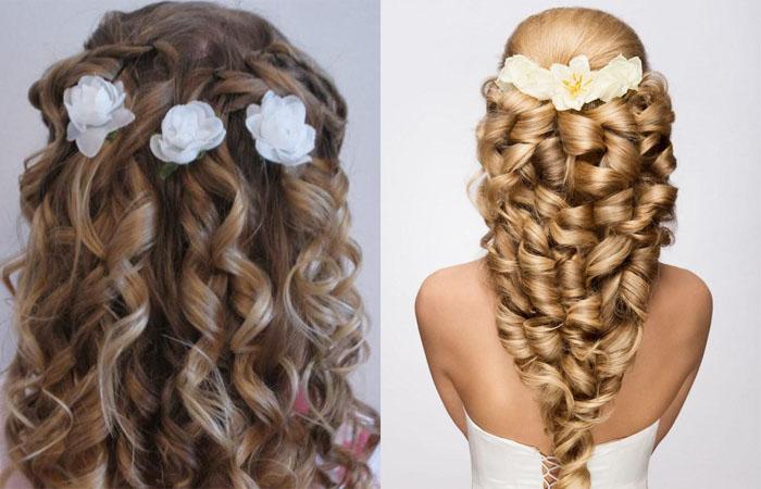 Локоны всегда выглядят помпезно, нарядно. Прически подходят маленьким принцессам и юным модницам, отправляющихся на бал. Также техника используется в свадебных прическах.