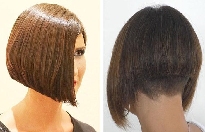 Обладательницам коротких и тонких волос стилисты рекомендуют приподнятый, объемный затылок. Нижняя часть шевелюры делается очень короткой, а верхняя ниспадает, словно шапочка. Ровный или косой, удлиненный срез — выбор за вами. Оба варианта смотрятся эффектно и выразительно.