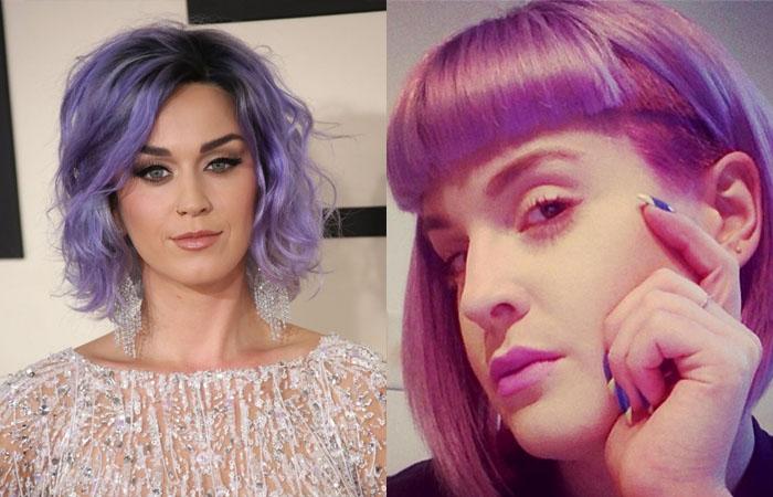 Синее, фиолетовое, зеленое каре демонстрирует Кэти Перри. Певица не боится экспериментов с цветом, радуя поклонников яркими, красочными образами.
