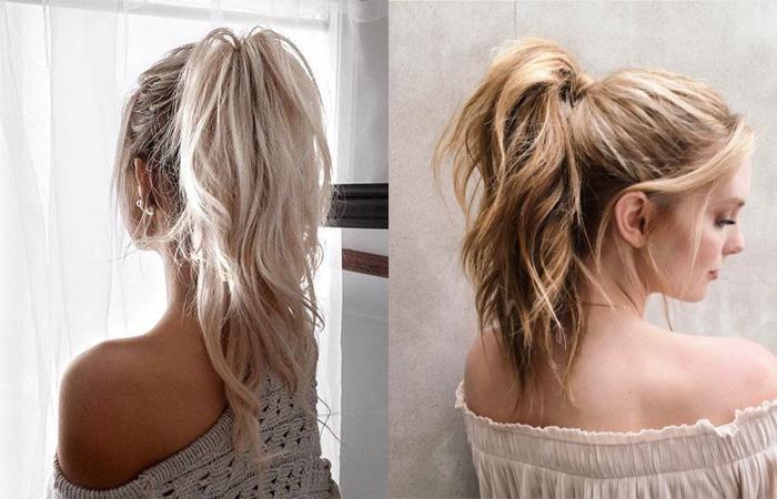 Высокий объемный хвост — простая, стильная прическа, идеально вписывается в стиль. Необходимо собрать все локоны в высокий хвост и выполнить несколько вращательных движений головой, чтобы немного растрепать их. Легкая небрежность в прическе смотрится естественно, даже мило. Выбивающиеся короткие локоны у лица придадут образу игривости, не нужно прятать и зализывать их.