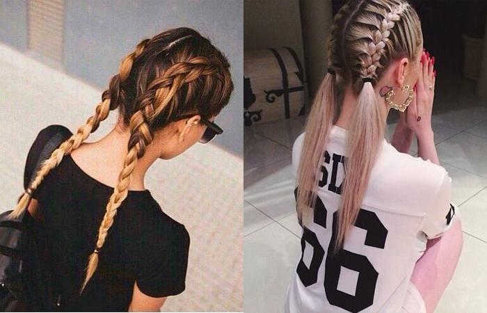 Заплетите волосы в 2 французские косы, а кончики распушите. Плетение не должно быть тугим, строгость в тамблеровском стиле противопоказана. Также можно собрать волосы в хвост, а из него уже заплести косу. Такой вариант прически смотрится интересно и гармонично.
