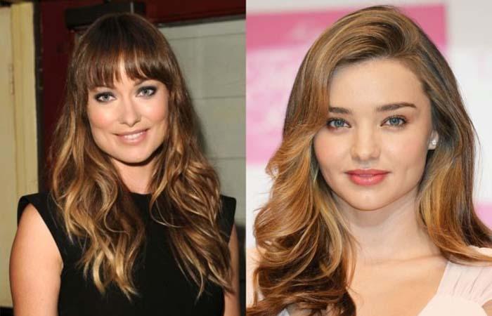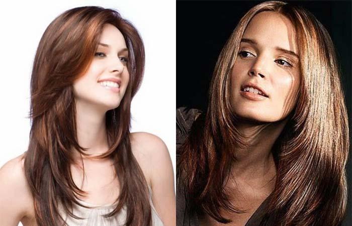 Длинные волосы наделены способностью тщательно скрывать ярко выраженные, угловатые черты лица. Распущенные пряди лучше дополнить косым пробором. Отвлечь внимание от щечек со скулами поможет бликовое окрашивание. Можно попробовать омбре с переходом от темного к светлому в зоне подбородка. Вариант противопоказан женщинам с квадратным типажом лица.