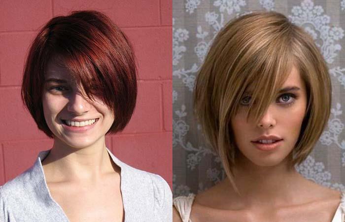 Хорошим вариантом станет боб. Длина прядей должна закрывать уши или достигать подбородка. Лучше выбрать градуированную модель. Удлинение прядей спереди подойдет обладательницам круглого, не вытянутого треугольного овала.