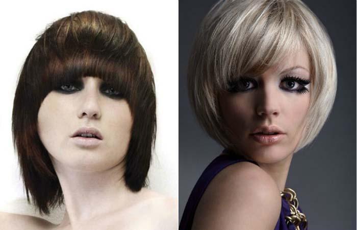 - косой пробор, асимметричная челка, градуировка — хорошие корректирующие методики.